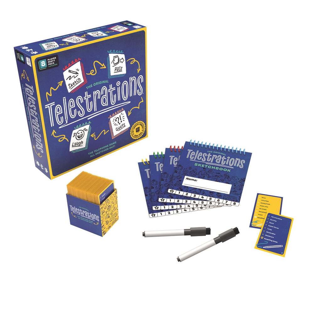 The award-winning game Telestrations will keep your family and friends entertained and laughing! Draw what you see then guess what you saw for hilarious and unpredictable outcomes.