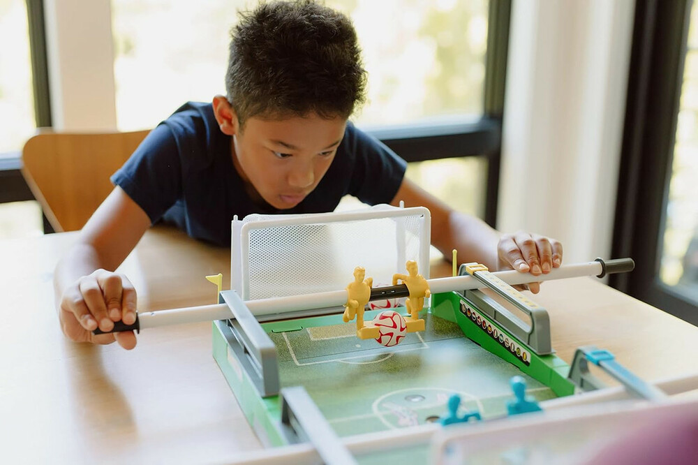 - Includes Flip Kick Soccer Table, 3 Soccer Balls, Assembly Instructions, Gameplay Instructions, Labels