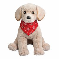 Make every day a walk in the park when you have Maple, our Jumbo Labrador stuffed animal, at your side! Her large, huggable size is made even more irresistible with sumptuous, creamy colored plush materials. With a coat so plushy and soft, you won’t be able to stop petting her! This big girl sits at 23″ in height and wears a cheerful, red bandana. Her brown-eyed puppy dog expression will tug at your heartstrings and connect with dog lovers on an emotional level. Details like her airbrushed ears and soft, leatherette nose bring an extra dose of realism to her design. High quality polyester fill and weighted paws combine to create a floppy friend who can’t wait to snuggle up on the couch together to watch TV or lie down for a cuddly snooze. There’s no bones about it, this lovable Lab pup is best in show when it comes to loyal plush companions!
