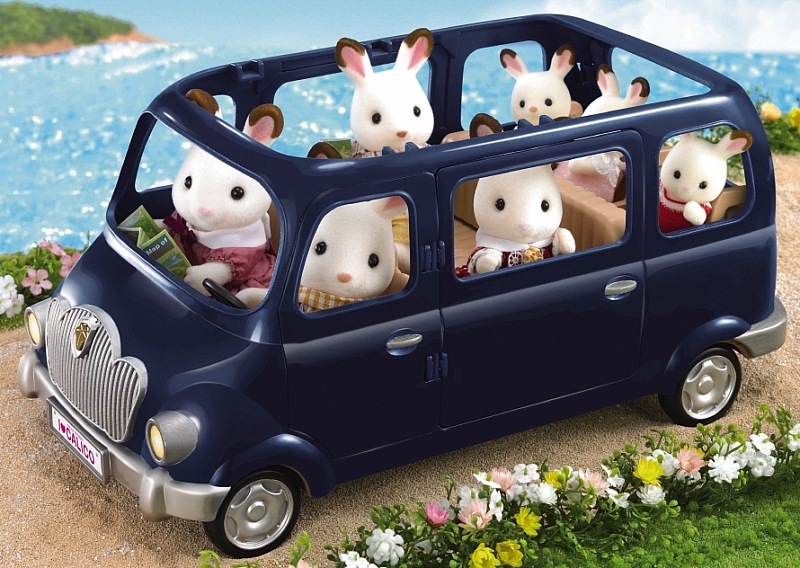 Calico Critter families love traveling around Cloverleaf Corners together in the Family Seven Seater! Seats up to 7 critters. Comes with 3 baby seats with safety straps, map, and guide book. Doors open and wheels rotate! Car measures 10" x 5" x 4 3/4". Calico Critter families sold separately.