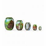 Beautifully printed on all sides with happy woodland critters, the Woodland Friends Nesting Set will delight children as they open each 1"–3"H egg to reveal a different scene more lovely than the last. Once open, stack the five eggs for a new way to play—or put the set back together and let the fun start all over again!