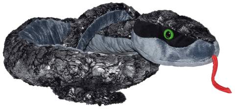 Take stuffed fun to a slithery new level with the Metallic Silver Snake Stuffed Animal 54 Inch Plush by Wild Republic! This plush silver snake measures fifty-four inches long and features unique reflective fabric with a smooth underside. The metallic silver fabric covers the top of the plush snake which is slightly shaggy. The underside of the snake's body is gray and this fun stuffed silver snake is also sticking out its red tongue in anticipation of all the snake-y stuffed fun it will soon be having with you!