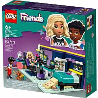 Kids aged 6+ have lots to discover in this LEGO® Friends Nova's Room (41755) building toy set. Zac didn't think he had much in common with Nova until he discovered that she loves gaming – just like him! Now they can build their friendship as they play together. Kids will love exploring the features in the bedroom scene. There's a gaming PC with keyboard and neon fans, plus a gaming chair and microphone. Kids can help the characters care for Pickle the rescue pup. There's a workbench where Nova repairs Pickle's wheels, plus a ramp to help him get onto the bed. Kids will love spotting extra details (like the hidden poster) that reveal Nova's other interests.