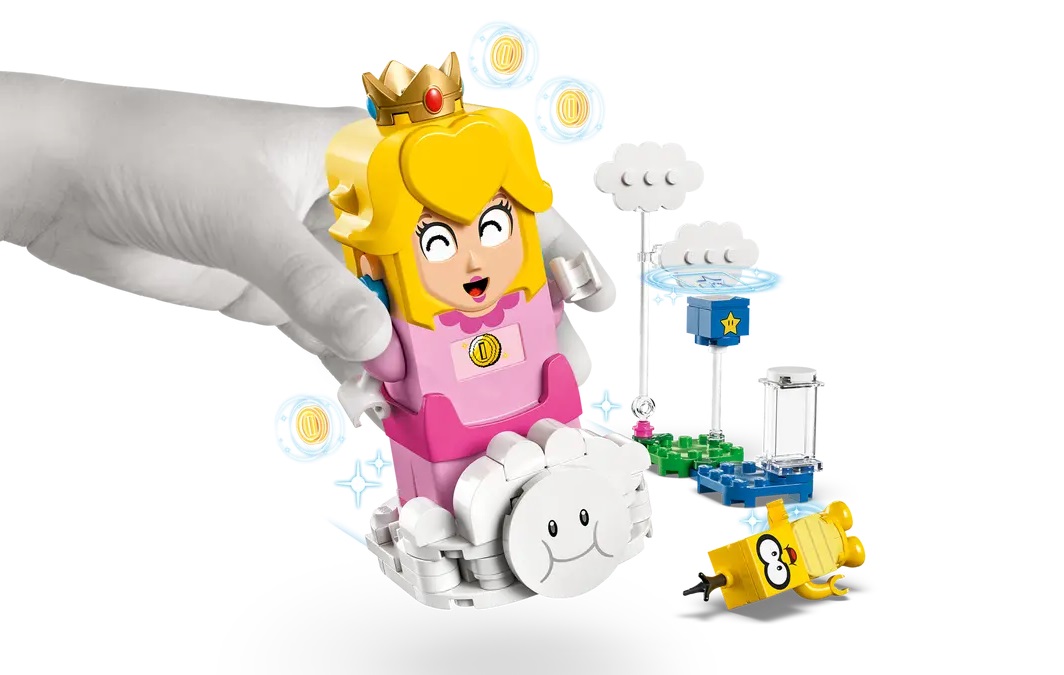 Join an iconic Super Mario character for a picnic and fly on a cloud to rescue the Yellow Toad with the Adventures with Interactive LEGO® Peach princess toy playset for kids (71441). A top Nintendo gift for girls, boys and gamers aged 6 and up,the set features an interactive LEGO Peach figure, plus Lakitu, a Yellow Toad and a Lava Bubble. Travel from the Start Pipe to the Goal Pole triggering digital reactions from LEGO Peach and collecting coins along the way. Have a picnic, read a letter saying that the Yellow Toad has been captured, topple Lakitu from the cloud, and fly, flip and loop the loop on the cloud on the way to rescue the Yellow Toad. The buildable cloud toy also has a fishing pole for Lakitu to lift the Yellow Toad’s picnic seat.