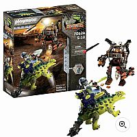 The villain attacks with his state-of-the-art robot fighter. The lightning-fast cannons, make the robot extremely dangerous and difficult to stop. But fortunately the brave team around Uncle Rob has made it their mission, to fight the soulless robots with all means at their disposal. On the back of his Saichania, the clever Milow rides in and tries to thwart the plans of the fighting machine. This dino-human power team is hard to beat.