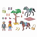 The Waterfall Ranch at the foot of the White Mountains is a true horse paradise. Both humans and animals feel at home here. Along with their guest horses, Amelia and Ben embark on a horseback riding trip to the beach. Of course, they have also thought about a delicious refreshment for themselves and their animal companions. The fantastic PLAYMOBIL Starter Packs invite children to dive directly into the diverse world of PLAYMOBIL. The sets include play figures and matching accessories from popular PLAYMOBIL worlds, are quickly assembled, and immediately ready play. Good for the environment: The playset is made up of more than 80% sustainable materials.