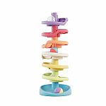 A tower made of many colourful elements with a large base to keep it all in firmly balanced. With the balls running down the spiral track, fun is guaranteed for all children.