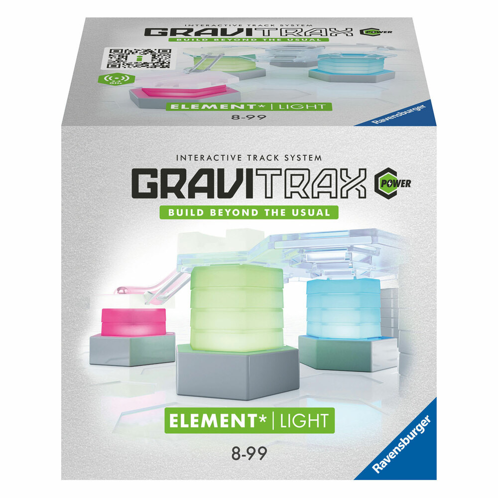 The Element Light includes a total of 3 light columns, which can be adjusted to different colours at the touch of a button. 12 large and 6 small transparent height stones allow flexible installation in any GraviTrax track.