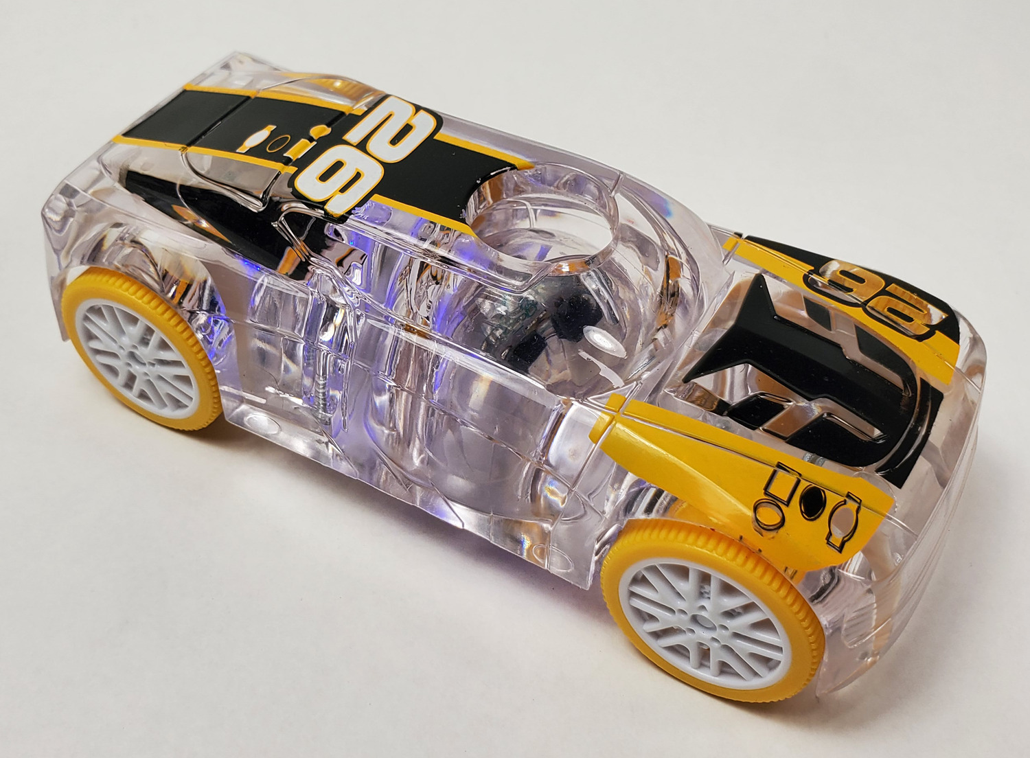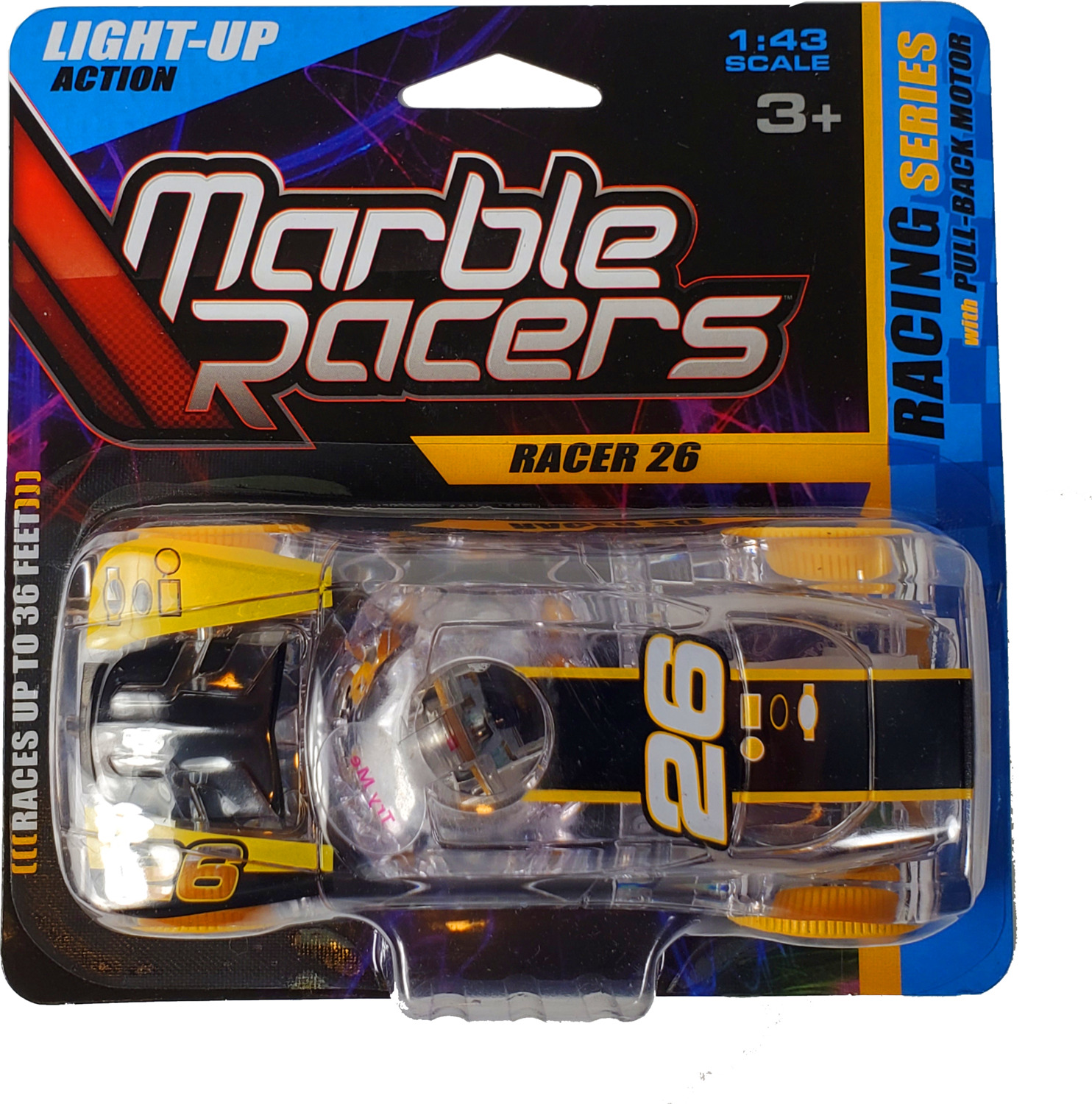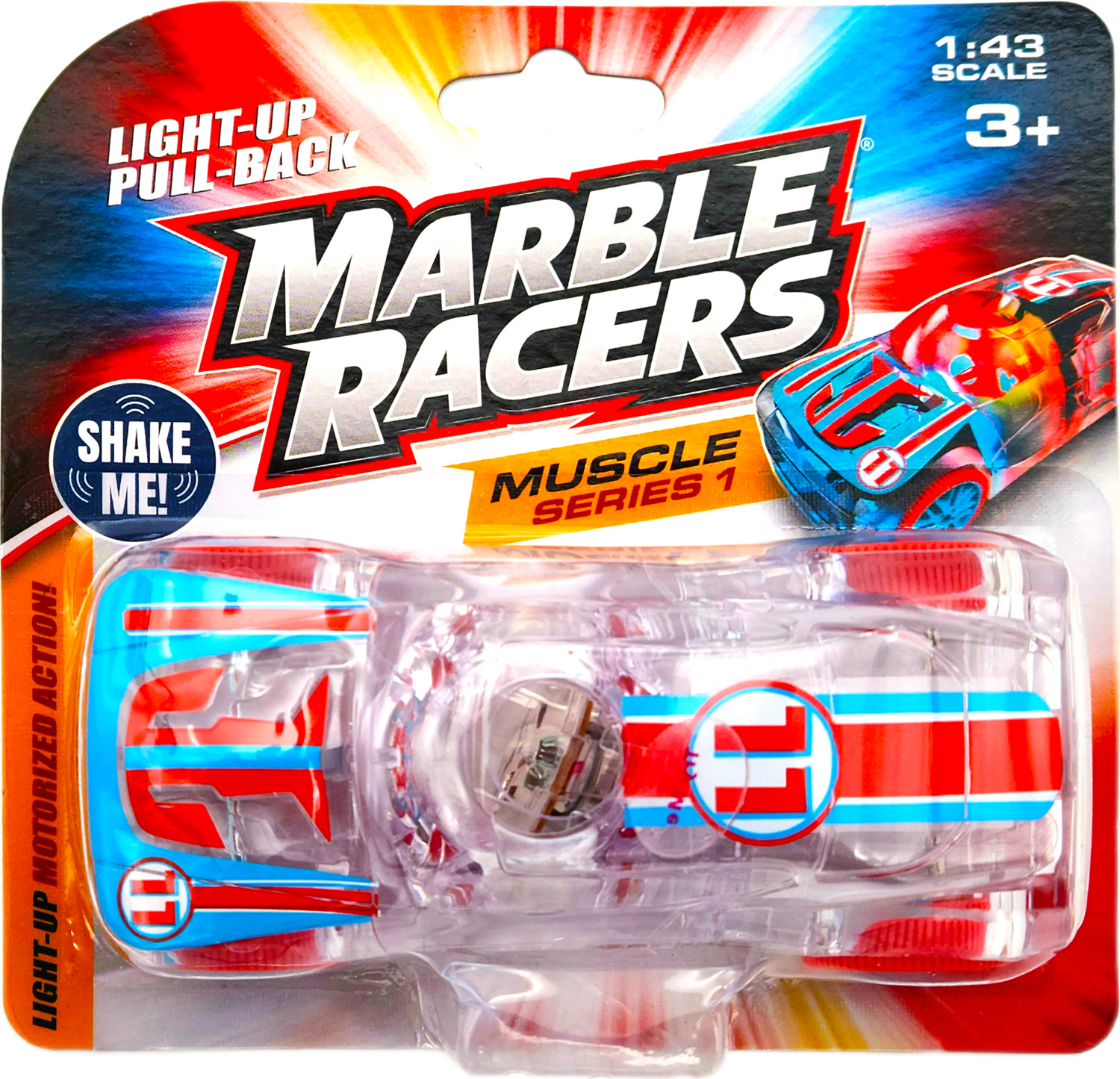 Light Up Marble Racers combine the racing excitement of mini-toy sports cars and the classic amusement of marbles to create a fun new toy for boys and girls 3 years of age and older. Kids customize their Marble Racers with themed, easy to use, crack & peel racing decals, race their creations on standard tracks, and then watch as the flashing LED marble rolls to keep pace with their speeding car.